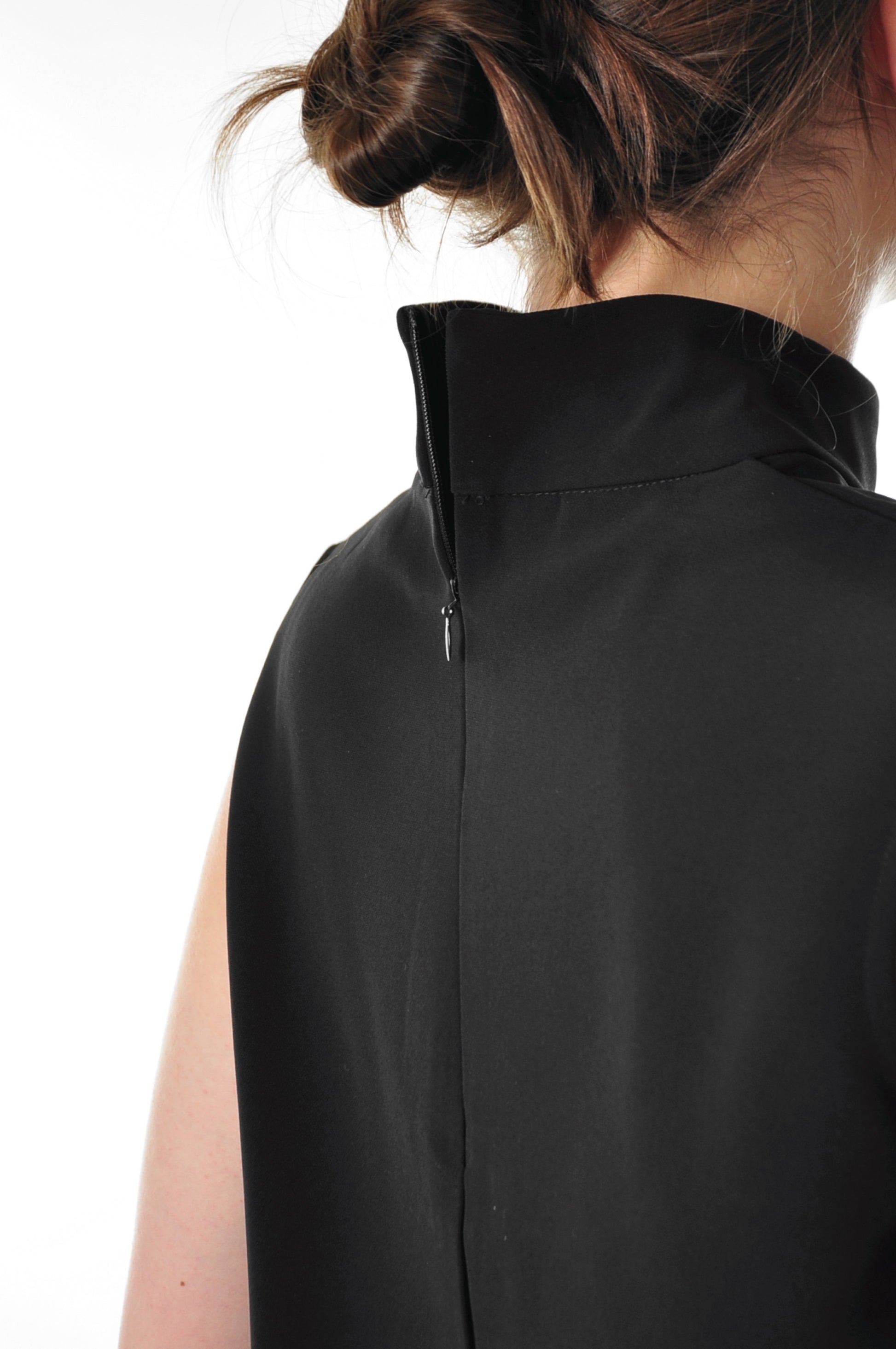 Black sleeveless top with high neck