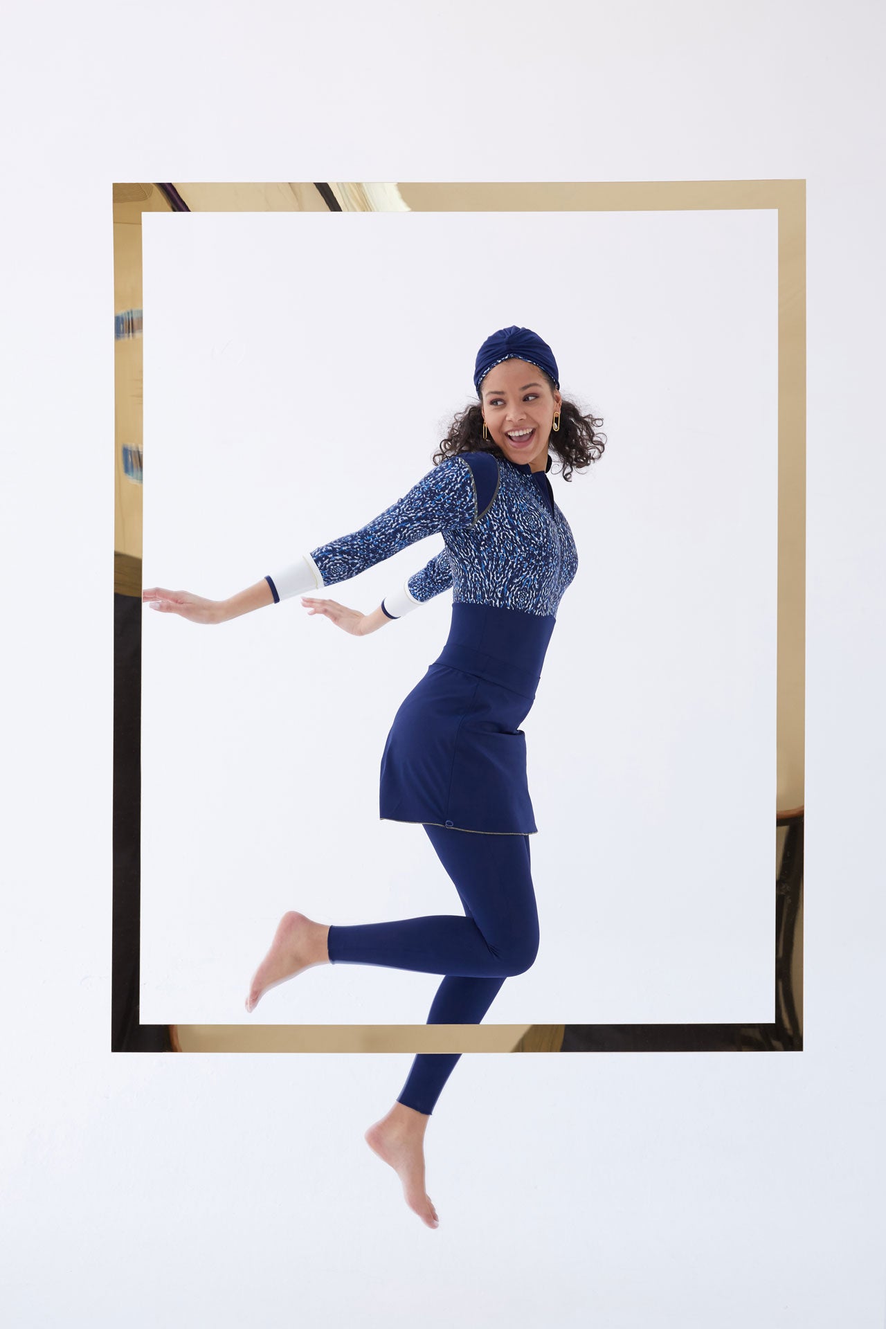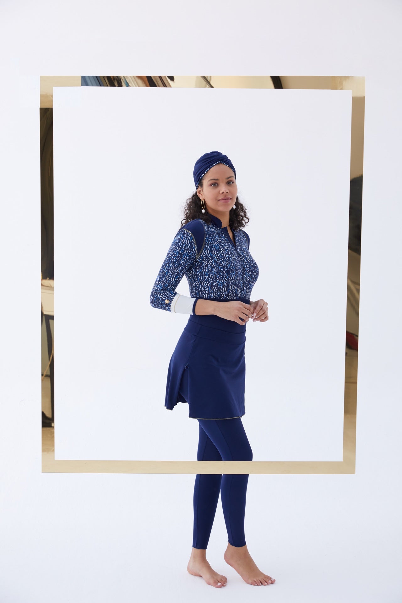 Skirted swim leggings , a skirt attached to the leggings for more coverage that allows you to enjoy your swim or your sport activities, it also has side zippers for adjustable fit.